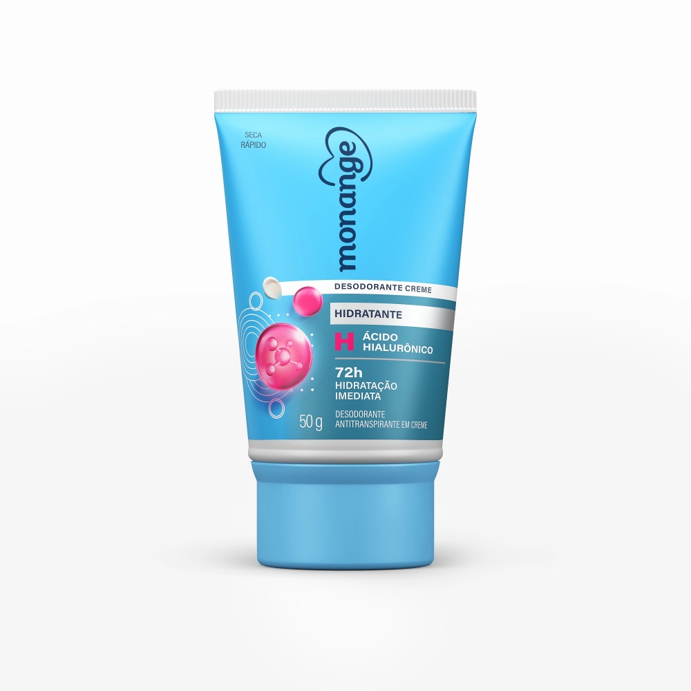 O Desodorante Antitranspirante Creme Monange Hidratante Feminino 72h 50g é um desodorante em creme hidratante desenvolvido para proporcionar 72 horas de proteção contra suor e odor, ao mesmo tempo em que promove hidratação imediata das axilas. Sua fórmula com ácido hialurônico ajuda a combater o ressecamento, melhora a firmeza e contribui para uma aparência mais saudável da pele, sendo indicado para todos os tons e tipos de pele.