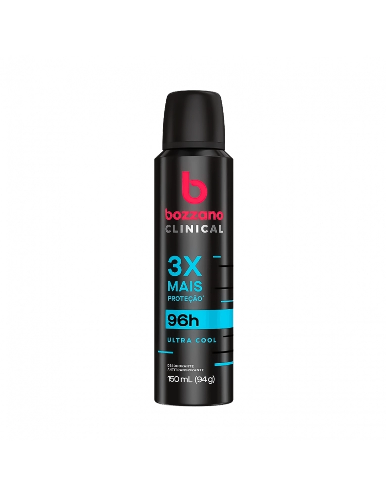 Testado dermatologicamente, o novo Desodorante Clinical Ultra Cool Antitranspirante Aerossol Bozzano foi desenvolvido com proteção máxima de até 96 horas para suas axilas. Com tecnologia total control que oferece 3 vezes mais proteção em comparação aos antitranspirantes comuns, evitando odores desconfortáveis e garantindo a melhor performance para o seu dia a dia. Sua fórmula combate o excesso de transpiração e é ideal para todos os tipos de pele.