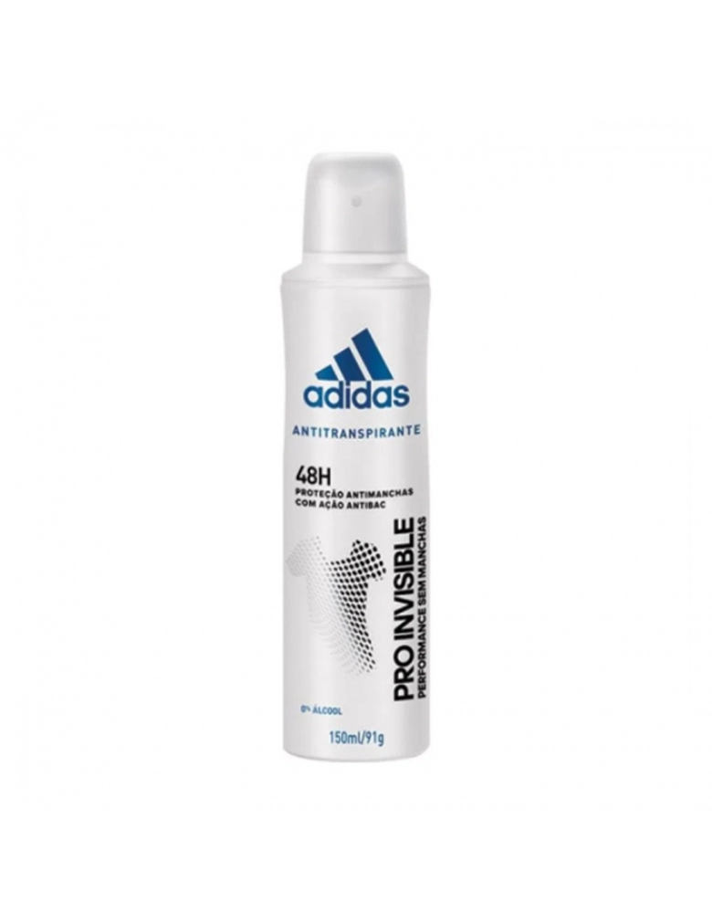 Para oferecer uma performance sem manchas, o desodorante aerossol Adidas Pro Invisible tem fórmula exclusiva desenvolvida com atletas, ação antibacteriana e sistema antimanchas brancas e amarelas, mantendo você seco e protegido por até 48 horas. Dermatologicamente testado, o desodorante aerossol Adidas Pro Invisible possui 0% de álcool, respeitando pH da pele.
