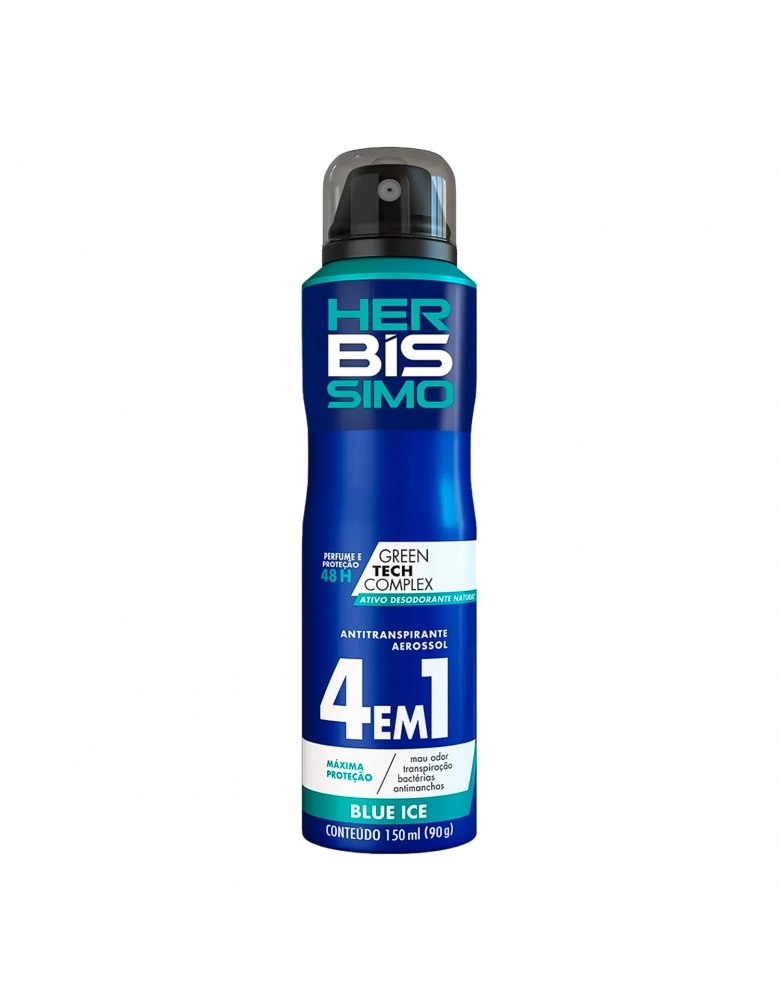 O Herbissimo Blue Ice é um desodorante 4 em 1: combate o mau odor, a transpiração/suor, elimina somente as bactérias ruins presentes nas axilas e sua composição evita manchas brancas e amareladas nas roupas. Sua fórmula garante até 48 horas de proteção desodorante e perfume, graças a uma tecnologia que libera de forma gradativa o composto natural.