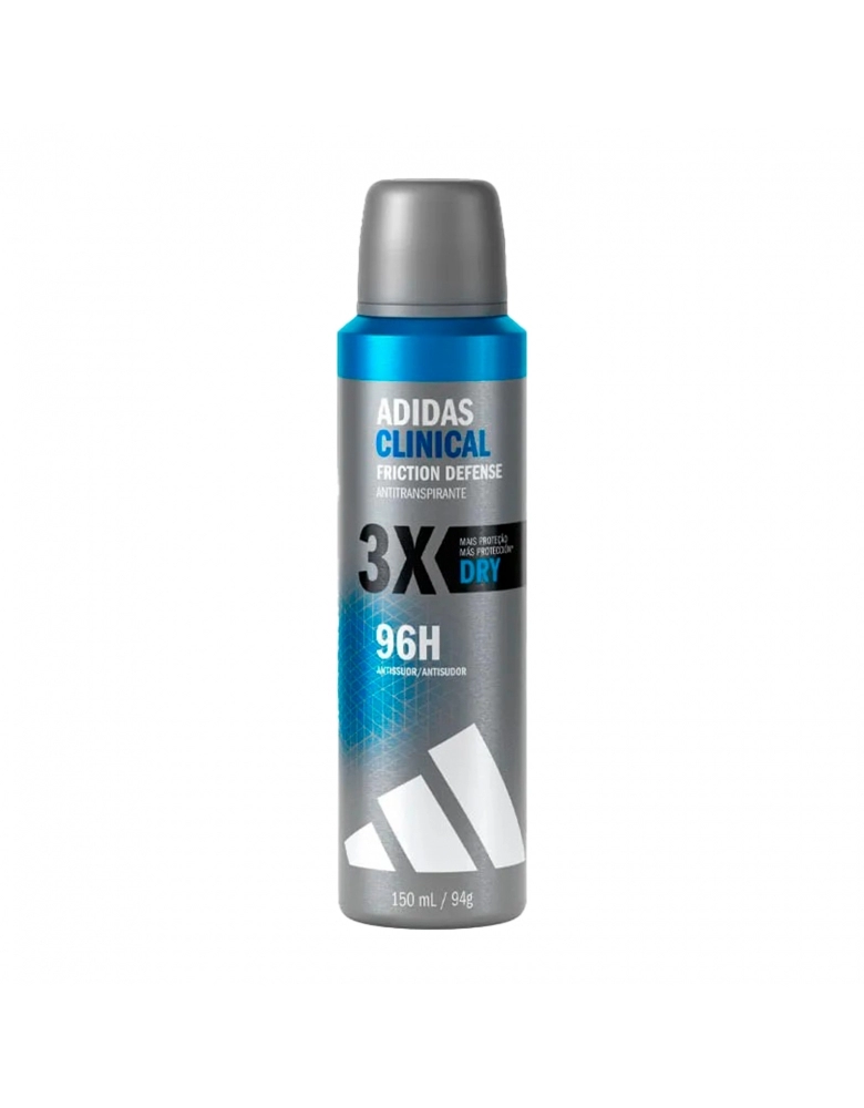 Adidas Clinical Dry oferece proteção intensiva contra suor e mau odor por até 96 horas, garantindo 3 vezes mais eficácia do que um antitranspirante comum. Sua fórmula avançada ajuda a prevenir irritações nas axilas causadas pela fricção, proporcionando conforto duradouro. Enriquecido com alantoína, ele ainda auxilia na restauração e no equilíbrio da barreira cutânea, cuidando da sua pele enquanto protege.