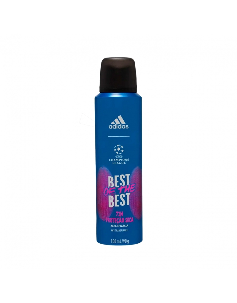 O novo desodorante aerossol antitranspirante masculino Adidas UEFA, de edição limitada, é o antitranspirante oficial da Champions League. Inspirado pela dedicação e alta performance dos jogadores da elite do futebol, protege por 72 horas e possui fragrância exclusiva. O desodorante Adidas UEFA é dermatologicamente testado, tem 0% álcool, respeitando o PH da pele e possui fórmula vegana e sem silicone.