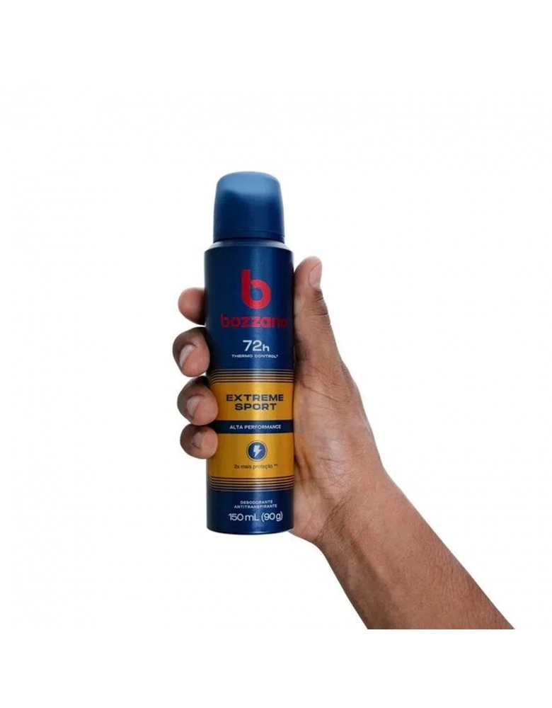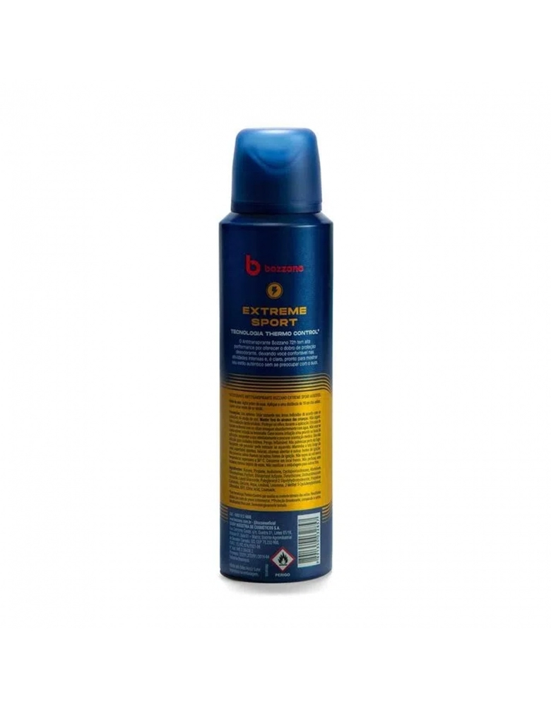O Desodorante Aerossol Antitranspirante Bozzano Extreme possui uma fórmula que apresenta um resultado eficaz contra o mau odor e a transpiração. Testado por dermatologistas e atletas em situações extremas. Oferece conforto e comodidade e uma sensação agradável, refrescante e suave na pele por todo o dia. Não contém álcool.