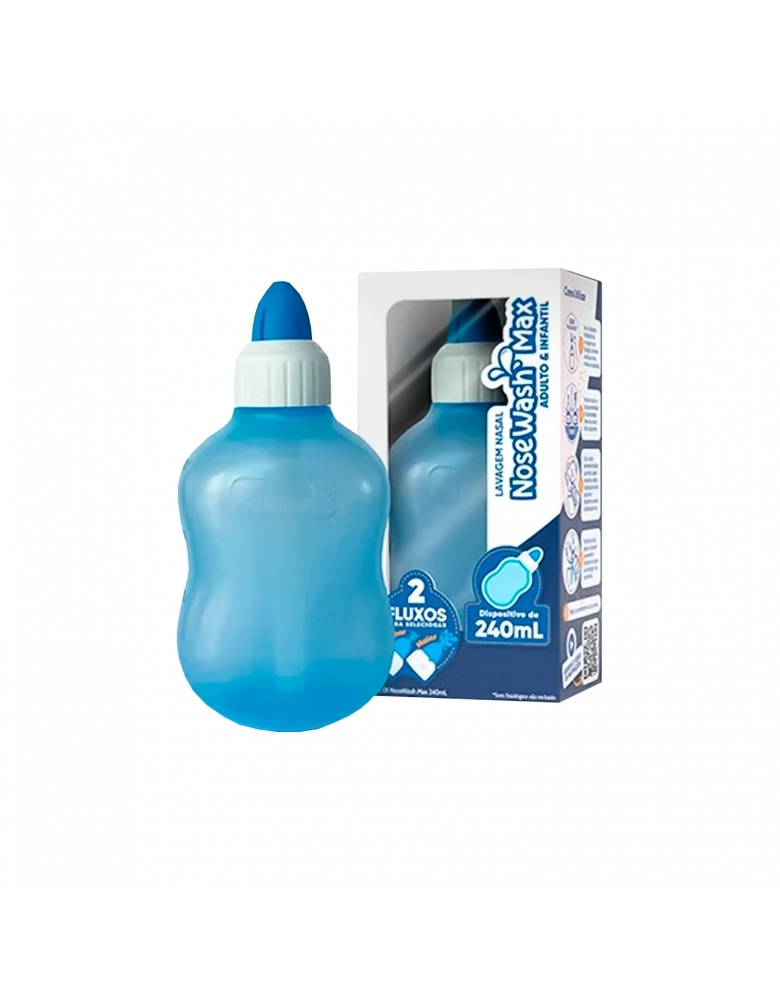 Com bico confortável e anatômico, garrafinhas vibrantes e coloridas, NoseWash Max é o dispositivo de 240mL ideal para lavagem nasal em adultos ou crianças.