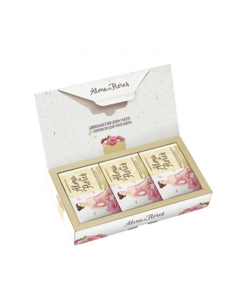 O Estojo 3 Sabonetes Alma de Flores Essência de Flores Brancas 390g é uma ótima opção de presente, ele vem com três Sabonetes Alma de Flores Essência de Flores Brancas 130g.