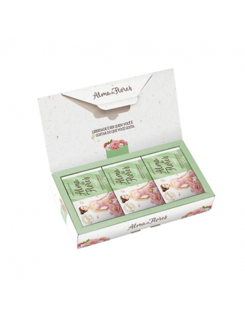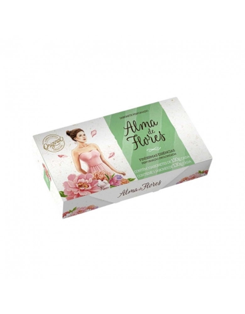 O Estojo 3 Sabonetes Alma de Flores Clássico 390g é uma ótima opção de presente, ele vem com três Sabonetes Alma de Flores Clássico 130g. Os sabonetes possuem possui uma fragrância que encanta por ser clássica e delicada, reunindo finíssimas essências de rosas, jasmim e flores de lavanda. Têm uma formulação suave, traduzida na delicadeza da cor e na cremosidade da espuma, e um silicone especial para produtos de banho que, além de criar uma espuma cremosa, forma um filme sobre a pele que a deixa macia e perfumada.