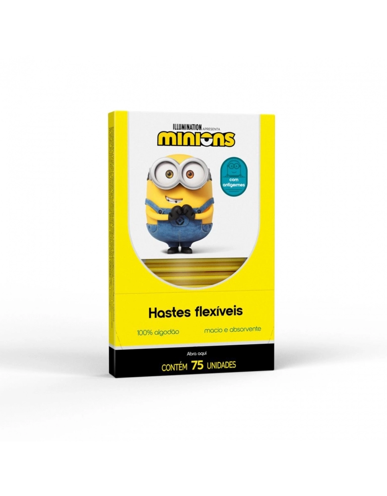 As hastes flexíveis Minions são produzidas com algodão extra - absorvente, que recebe tratamento bactericida para torná-las livres de impurezas.