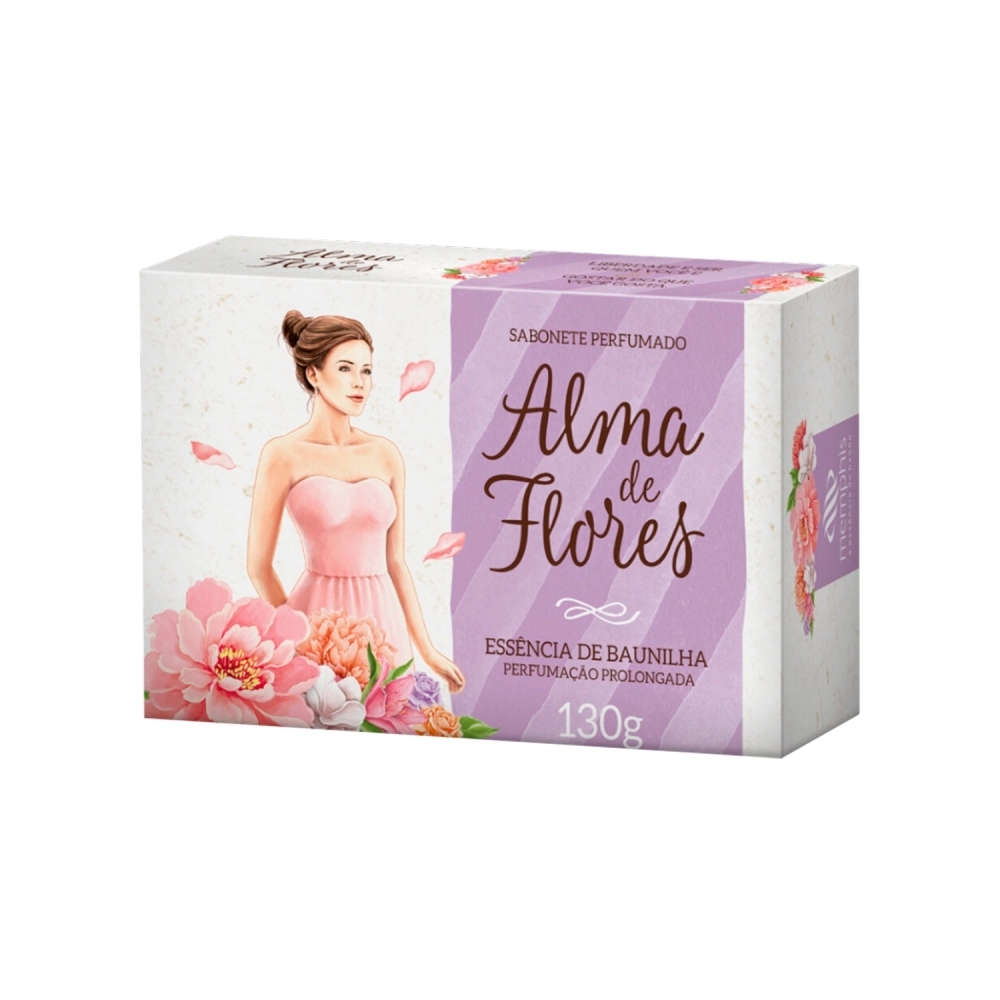 O Sabonete Alma de Flores Baunilha 130g tem uma formulação suave, traduzida na delicadeza da cor e na cremosidade da espuma. Possui um silicone especial para produtos de banho que, além de criar uma espuma cremosa, forma um filme sobre a pele que a deixa macia e perfumada. Tem fragrância adocicada de baunilha e perfume intenso, que permanece por mais tempo na pele, proporcionando duradoura e agradável sensação de bem-estar.