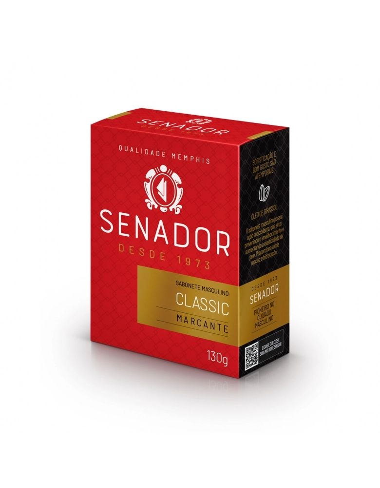 O Sabonete Senador Classic é pioneiro no cuidado masculino, com fórmula de alta espumação para tornar um banho único. Sua fragrância elegante e clássica deixa a pele com sensação de banho duradouro, com um perfume inconfundível e personalidade marcante.