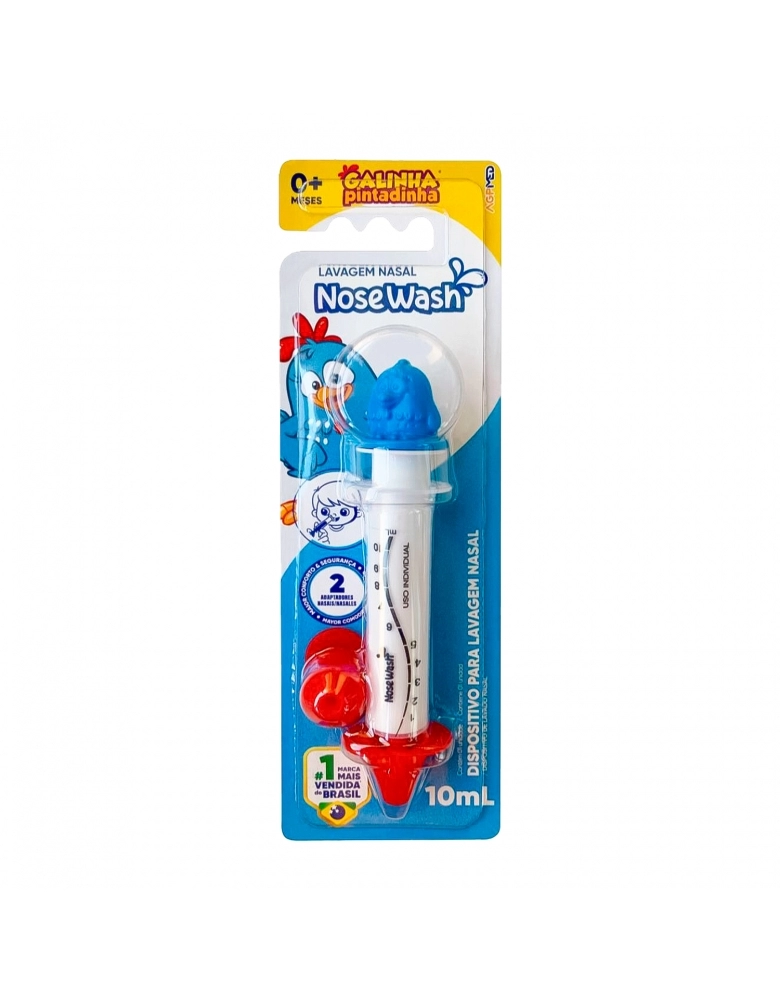 Lavar o nariz de bebês nem sempre é uma tarefa fácil. NoseWash traz uma proposta inovadora ao transformar este momento em experiência mais positiva. Agora com o tema de Galinha Pintadinha, a galinha mais famosa do Brasil, NoseWash oferece um momento mais divertido para as crianças, reduzindo o medo das crianças ao lavar o nariz. Além disso, NoseWash contém adaptadores que protegem o nariz, já que durante a lavagem nasal infantil, os bebes e crianças costumam se mexer bastante e por isso é fundamental esse mecanismo de segurança.