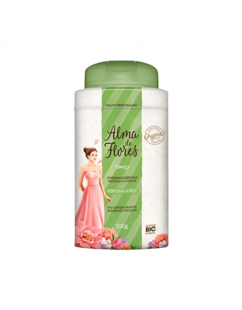 O Talco Perfumado Alma de Flores Clássico 100g possui uma fragrância clássica e delicada. O seu perfume é rico em essências de rosas, jasmim e flores de lavanda, além de diversos óleos essenciais naturais que são provenientes de diferentes partes do mundo. Ele ajuda a prevenir a transpiração, deixando uma sensação de frescor, além de proporcionar uma sensação de limpeza o dia todo.