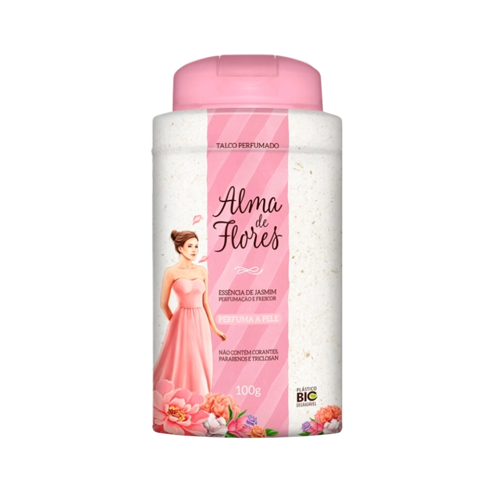O Talco Perfumado Alma de Flores Jasmim 100g apresenta uma combinação harmoniosa com agradável fragrância de jasmim, o que prolonga a sensação de bem-estar e perfumação durante todo o dia. Além disso, ele mantém a pele protegida e intensamente perfumada. Ele é feminino, romântico e confortável.