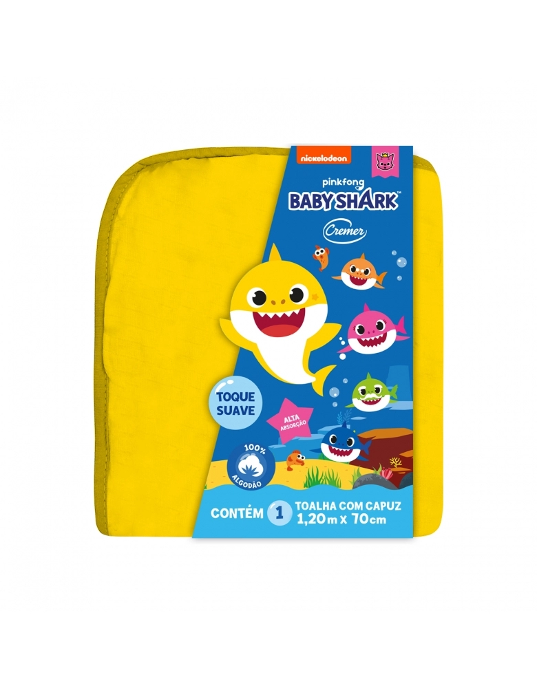 TOALHA BANHO COM CAPUZ BABY SHARK CREMER