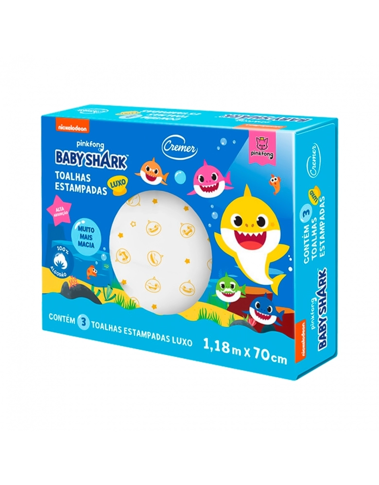 TOALHA BANHO LUXO ESTAMPADA BABY SHARK 1,18MX70CM C/3 CREMER