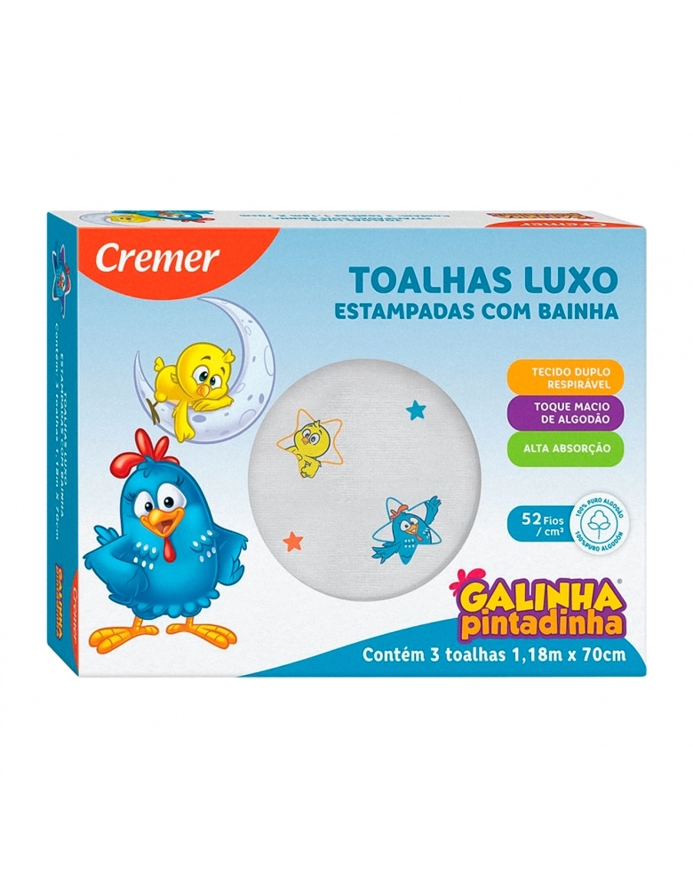 TOALHA BANHO LUXO ESTAMPADA GALINHA PINTADINHA 1,18MX70CM C/3 CREMER