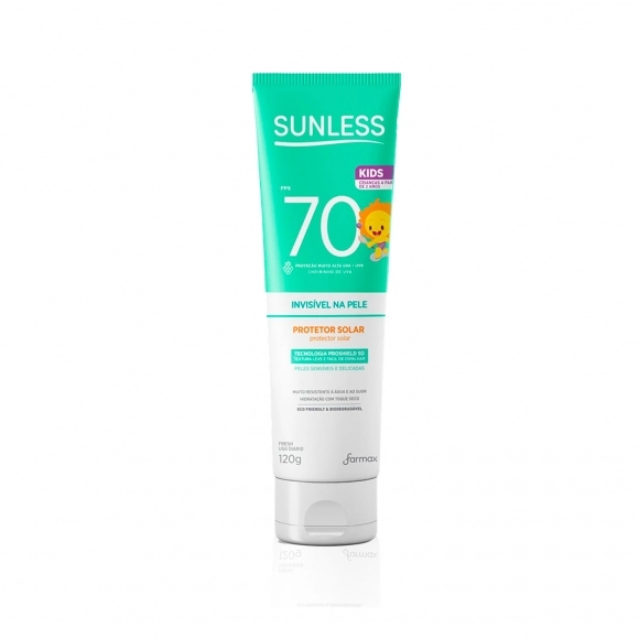 O protetor solar Sunless FPS 70 oferece alta proteção contra os raios solares, sendo ideal para peles mais sensíveis ou para exposição prolongada ao sol.