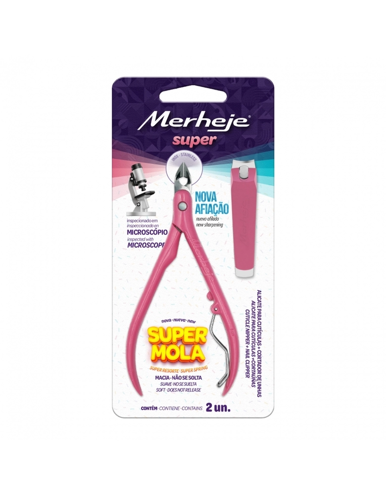 O Kit Merheje Super foi desenvolvido pensando em quem gosta de fazer as unhas em casa. Para isso, oferece material de alta qualidade e precisão. Neste conjunto, você vai encontrar um alicate de cutículas que é feito em aço inox, que já vem afiado e pronto para o uso. Já o cortador de unhas tem ótima precisão e corte abrangente, super rápido e prático de utilizar.
