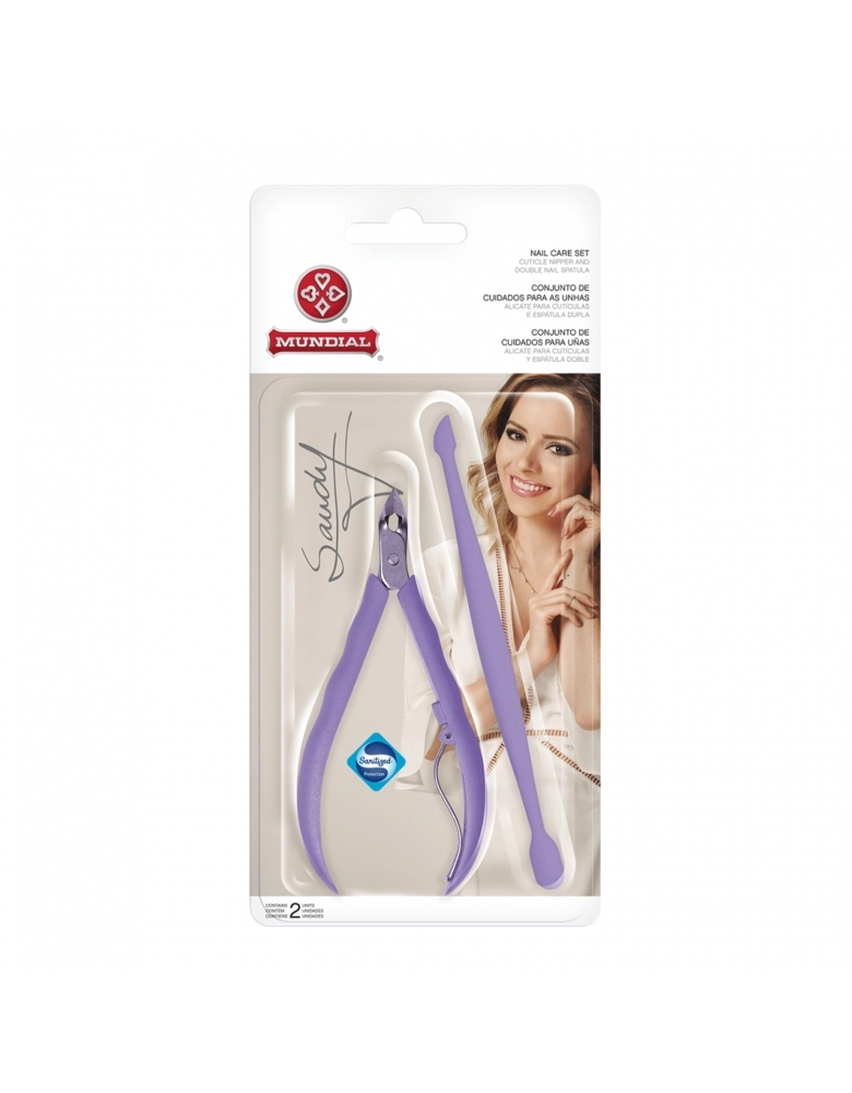 ALICATE CUTÍCULA + ESPÁTULA LILAS SANDY 756 MUNDIAL