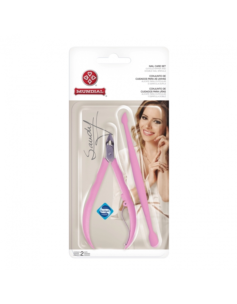 ALICATE CUTÍCULA + ESPÁTULA ROSA SANDY 756 MUNDIAL