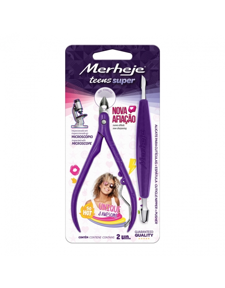 ALICATE CUTÍCULA + ESPÁTULA TEENS SUPER VIOLETA MERHEJE