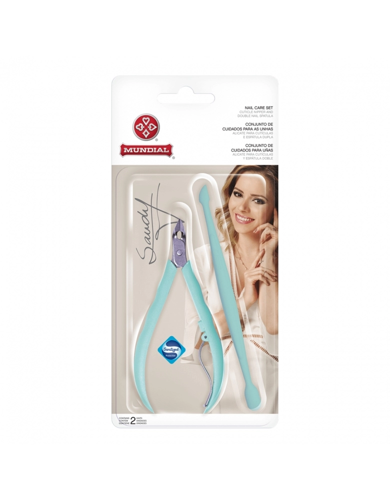 ALICATE CUTÍCULA + ESPÁTULA VERDE SANDY 756 MUNDIAL