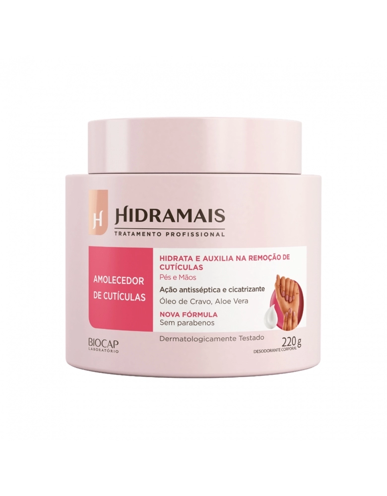 O Amolecedor de Cutículas Hidramais é indicado para pessoas que buscam maiores cuidados das mãos e dos pés. Pode ser usado por profissionais ou para uso em casa. Além de hidratar as cutículas, o creme também fortalece as unhas. Produto dermatologicamente testado e sem testes em animais.