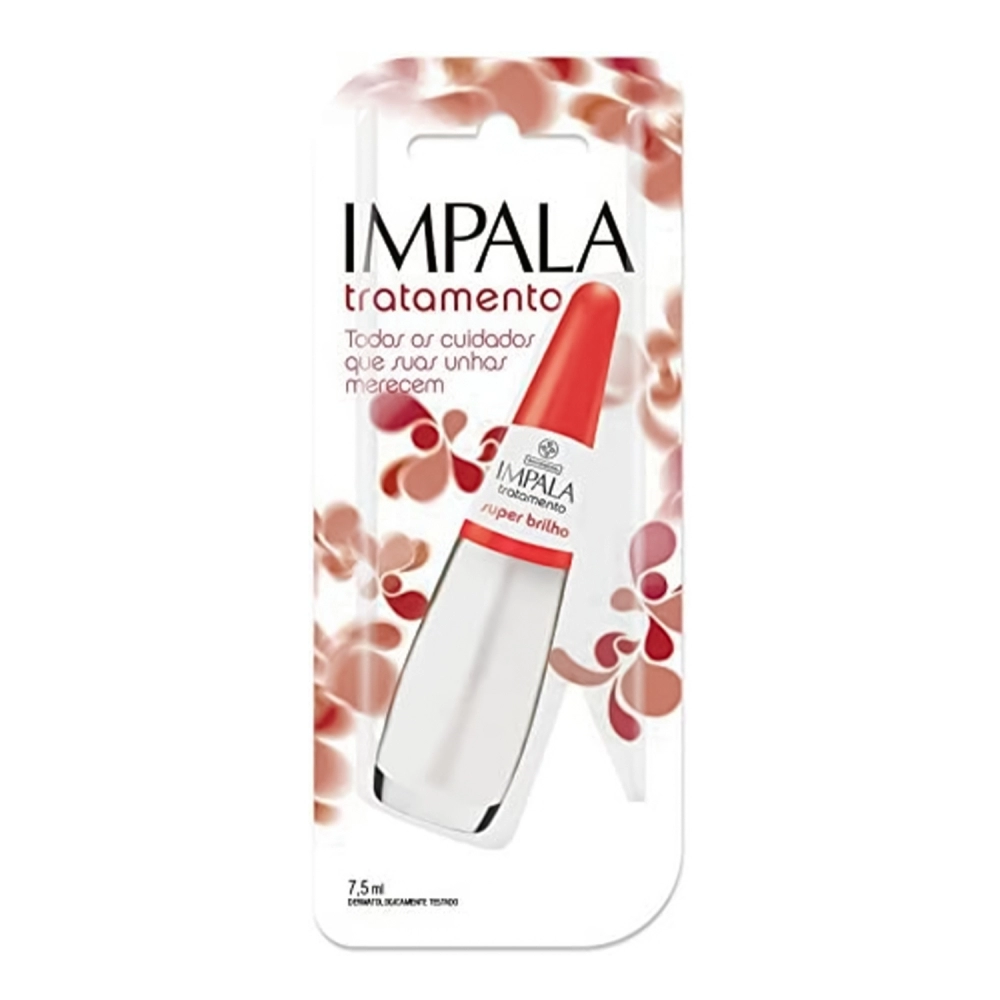 Impala Esmalte Base Incolor contém várias funções em um único produto. É uma base hidratante com ativador de crescimento de unhas, tem função fortalecedora (protege contra futuras quebras no meio do processo de fortalecimento), rejuvenesce as unhas e evita o envelhecimento precoce (antioxidante). Contém Vitamina E, D-Pantenol e é uma base rica em óleos de argan, amêndoa, arroz e macadâmia.