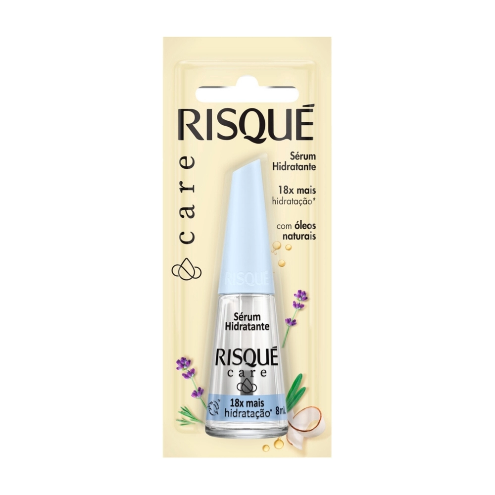 O Sérum Hidratante da linha Risqué Care proporciona 18 vezes mais hidratação para as cutículas. Para uso ao longo da semana para manter as cutículas sempre hidratadas. Risqué Care é uma linha de cuidados completa do início ao fim. Conta com diversos produtos em sua linha, todos eles com óleos naturais. Um cronograma de cuidados antes, durante e depois da esmaltação.