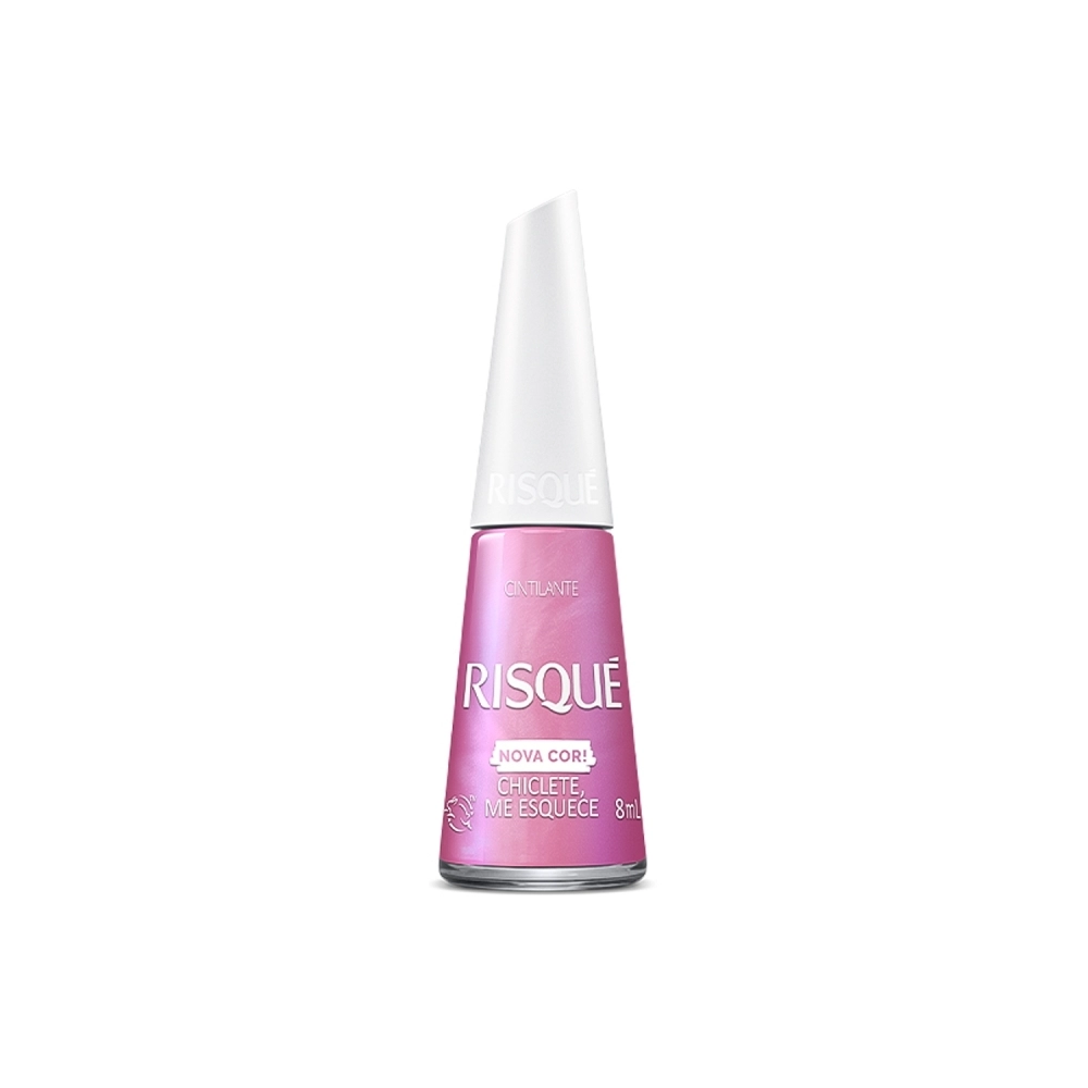 O Esmalte Risqué Chiclete, Me Esquece é cintilante, de secagem rápida e com ultra brilho, além de ter longa duração nas unhas. Sua fórmula é hipoalergênica, isto é, livre de componentes que costumam causar alergias e seu pincel proporciona aplicação perfeita e alta cobertura.