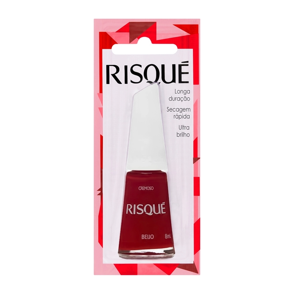 O esmalte Risqué Vermelho Beijo é cremoso, de secagem rápida e com ultra brilho, além de ter longa duração nas unhas. Sua fórmula é hipoalergênica, isto é, livre de componentes que costumam causar alergias e seu pincel proporciona aplicação perfeita e alta cobertura.
