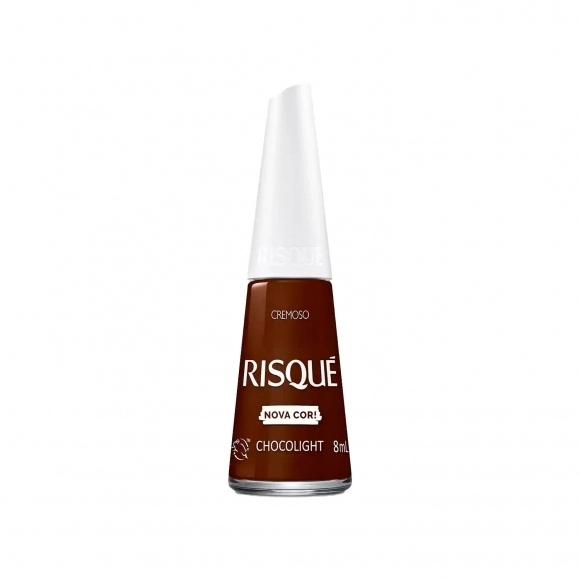 O esmalte nude Risqué Chocolight é um marrom com acabamento cremoso, de secagem rápida e com ultra brilho, além de ter longa duração nas unhas. Sua fórmula é hipoalergênica, isto é, livre de componentes que costumam causar alergias, seu pincel proporciona aplicação perfeita e alta cobertura.