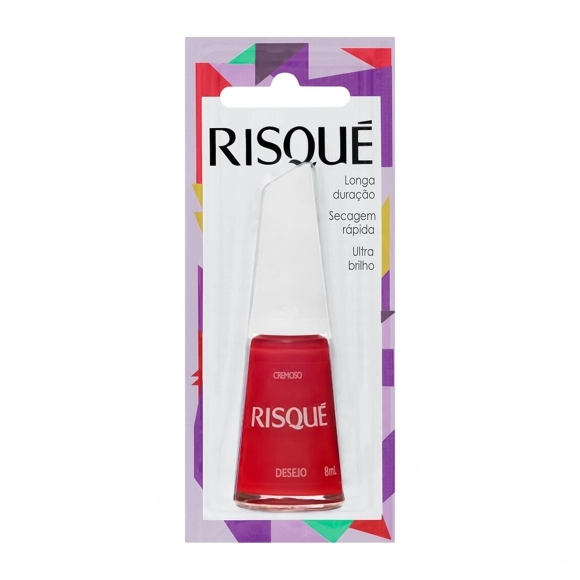 O esmalte Risqué Vermelho Desejo é cremoso, de secagem rápida e com ultra brilho, além de ter longa duração nas unhas. Sua fórmula é hipoalergênica, isto é, livre de componentes que costumam causar alergias e seu pincel proporciona aplicação perfeita e alta cobertura.