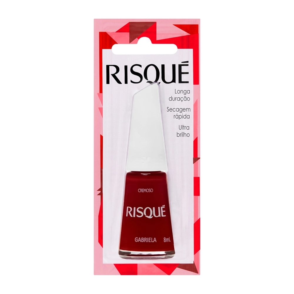 O esmalte Risqué Vermelho Gabriela é cremoso, de secagem rápida e com ultra brilho, além de ter longa duração nas unhas. Sua fórmula é hipoalergênica, isto é, livre de componentes que costumam causar alergias e seu pincel proporciona aplicação perfeita e alta cobertura.