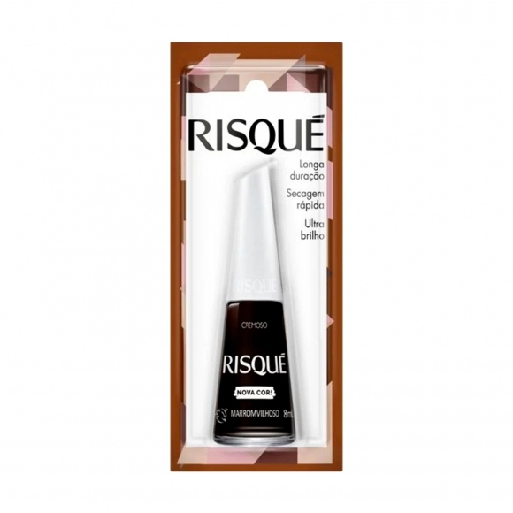 O esmalte nude Risqué Marromvilhoso é um marrom escuro com acabamento cremoso, de secagem rápida e com ultra brilho, além de ter longa duração nas unhas. Sua fórmula é hipoalergênica, isto é, livre de componentes que costumam causar alergias, seu pincel proporciona aplicação perfeita e alta cobertura.