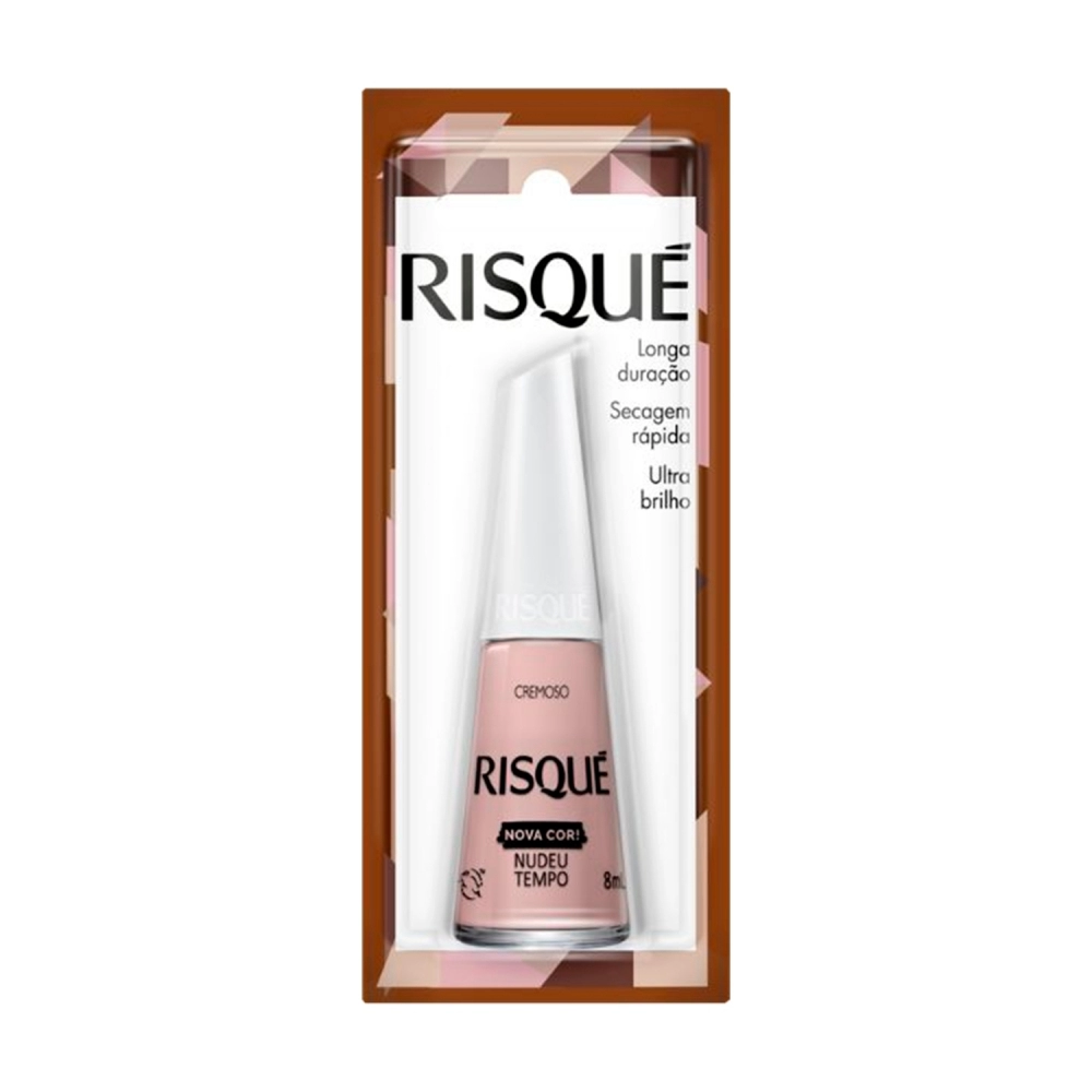 O esmalte nude Risqué Nudeu Tempo possui um fundo rosado com acabamento cremoso, de secagem rápida e com ultra brilho, além de ter longa duração nas unhas. Sua fórmula é hipoalergênica, isto é, livre de componentes que costumam causar alergias, seu pincel proporciona aplicação perfeita e alta cobertura.