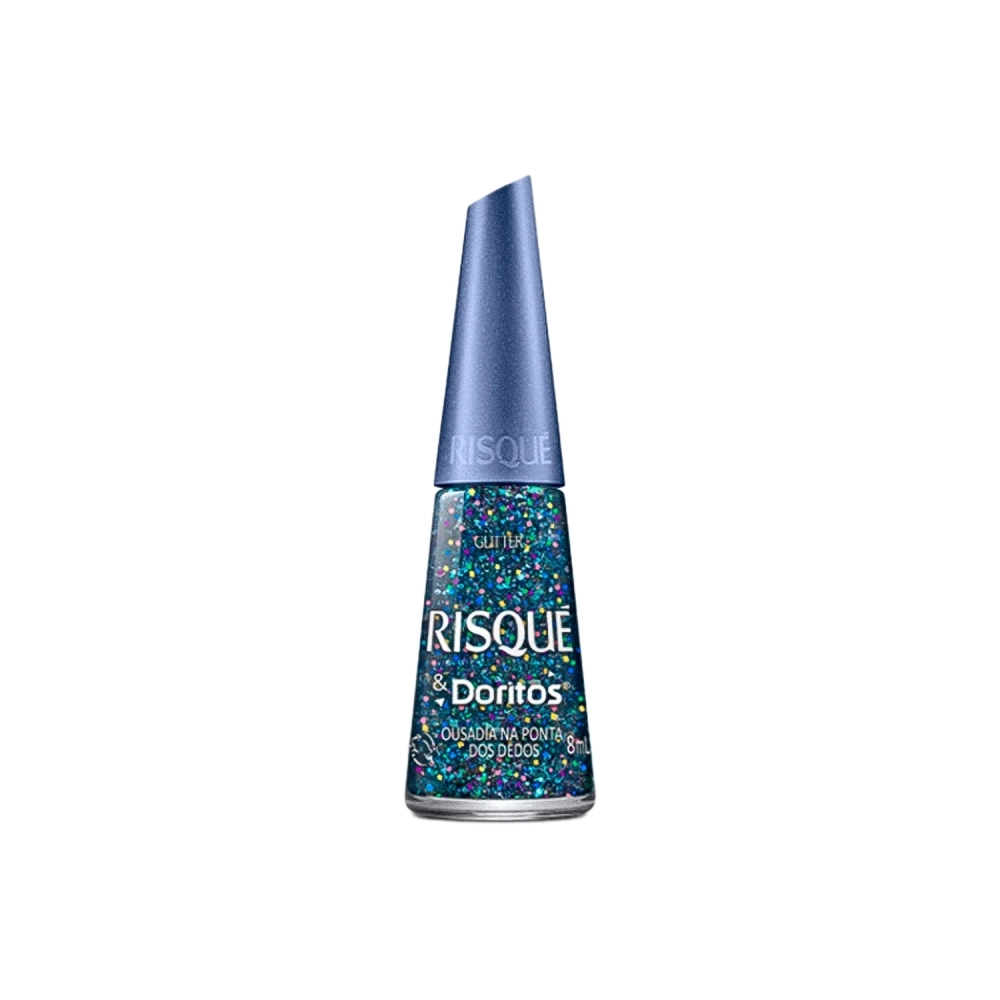 O esmalte com efeito glitter Risqué & Doritos Ousadia na Ponta dos Dedo, de secagem rápida e com ultra brilho. Seu pincel proporciona uma aplicação perfeita e alta cobertura. Além disso, possui longa duração e fórmula hipoalergênica, sendo livre de componentes que costumam causar alergias. Todos os produtos Risqué são aprovados pelo programa Leaping Bunny da Cruelty Free International, padrão ouro globalmente reconhecido para produtos livre de crueldade animal.