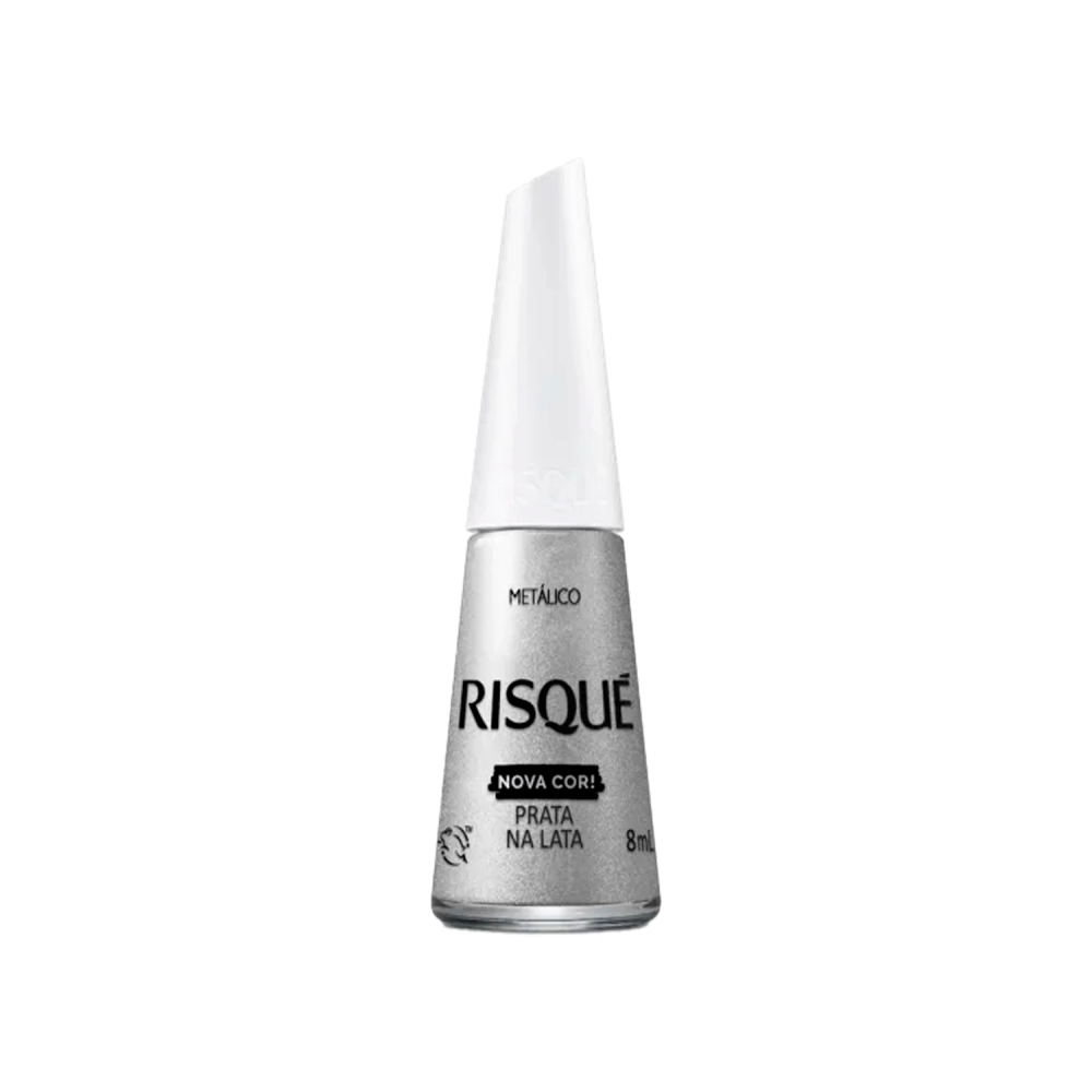 O esmalte prateado Risqué Prata na Lata tem acabamento metálico, de secagem rápida e com ultra brilho, além de ter longa duração nas unhas. Sua fórmula é hipoalergênica, isto é, livre de componentes que costumam causar alergias, seu pincel proporciona aplicação perfeita e alta cobertura.
