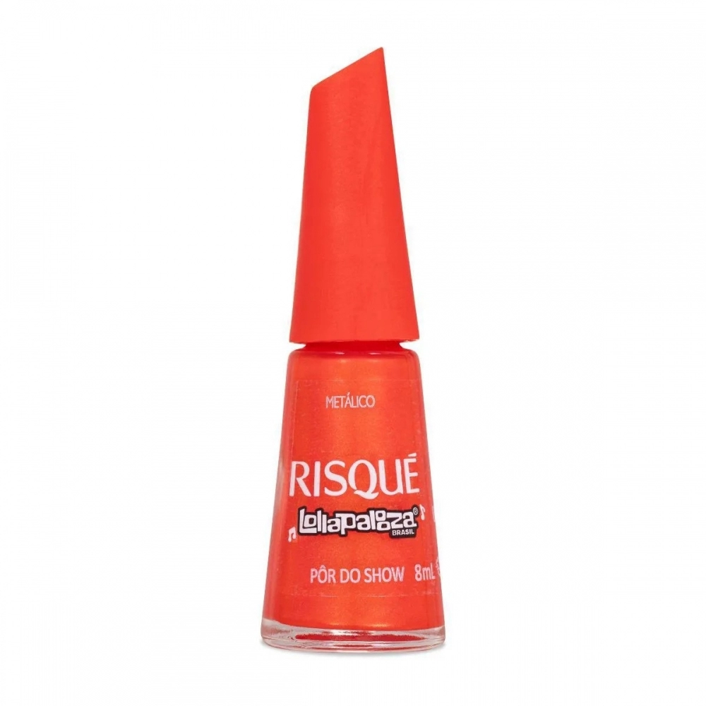 Esmalte Risqué Coleção Lollapalooza Metálico Pôr Do Show 8ml integra a coleção inspirada no clima inovador e artístico do Lollapalooza, trazendo um acabamento metálico impactante que reflete luz com intensidade e modernidade. Sua fórmula proporciona alta cobertura, fácil aplicação e brilho elegante, perfeito para quem gosta de unhas diferenciadas e cheias de atitude.