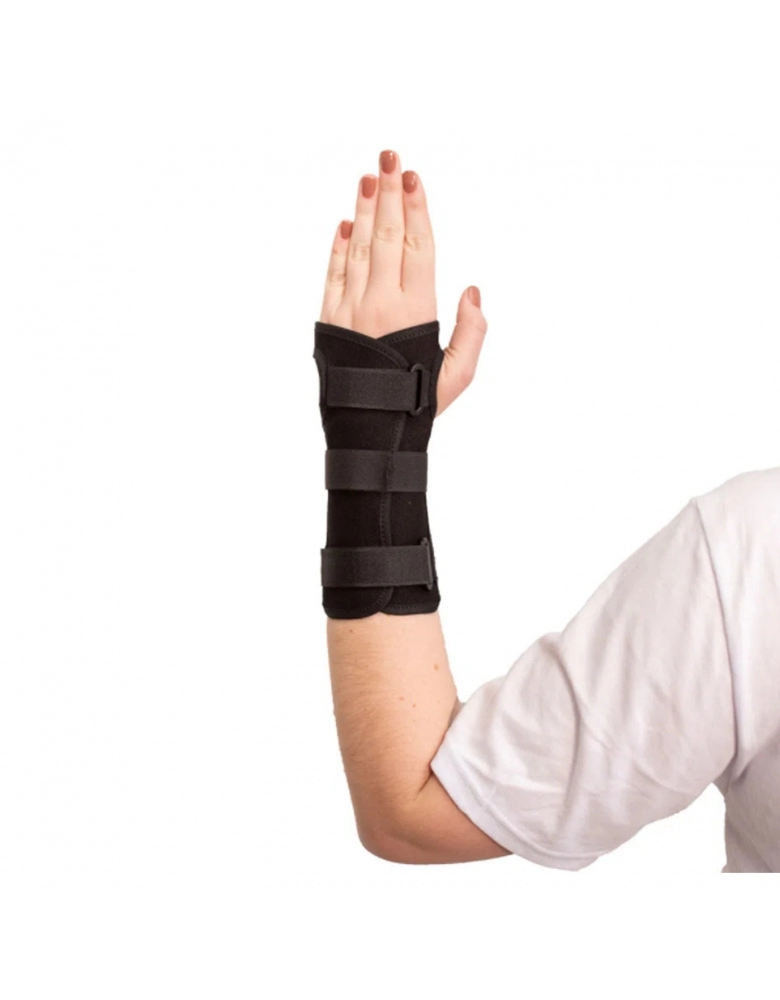 É leve, ajustável através de fechos aderentes, que proporcionam compressão adequada. A órtese possui tala anatômica removível, que proporciona maior estabilização e proteção do punho, podendo ser retirada quando desejado. Confeccionada em tecido macio e resistente, com revestimento em algodão. Pode ser utilizada tanto no punho direito quanto no esquerdo.