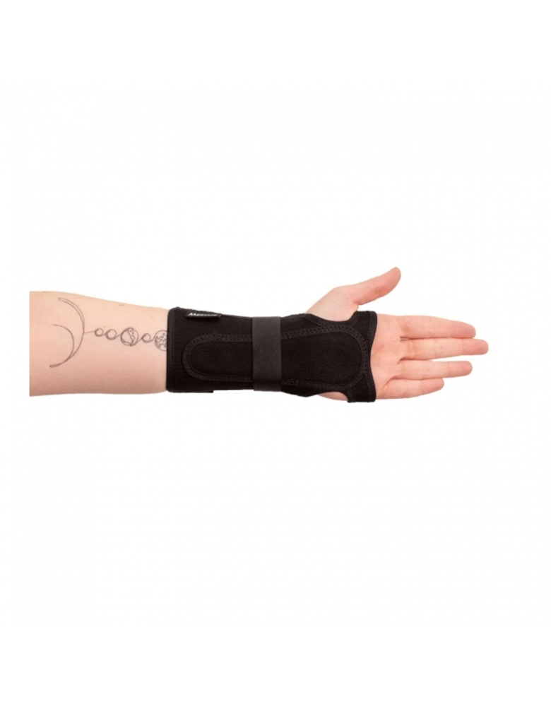 É leve, ajustável através de fechos aderentes, que proporcionam compressão adequada. A órtese possui tala anatômica removível, que proporciona maior estabilização e proteção do punho, podendo ser retirada quando desejado. Confeccionada em tecido macio e resistente, com revestimento em algodão.