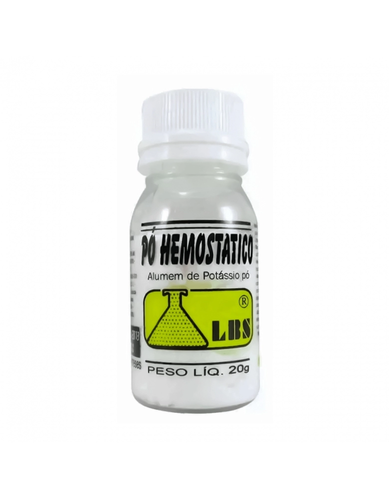 Pó Hemostático base de alúmen de potássio LBS 20g é excelente adstringente e utilizado em pequenos ferimentos, como cortes pós-barba, manicure e, proporcionando uma cicatrização rápida e alívio imediato.