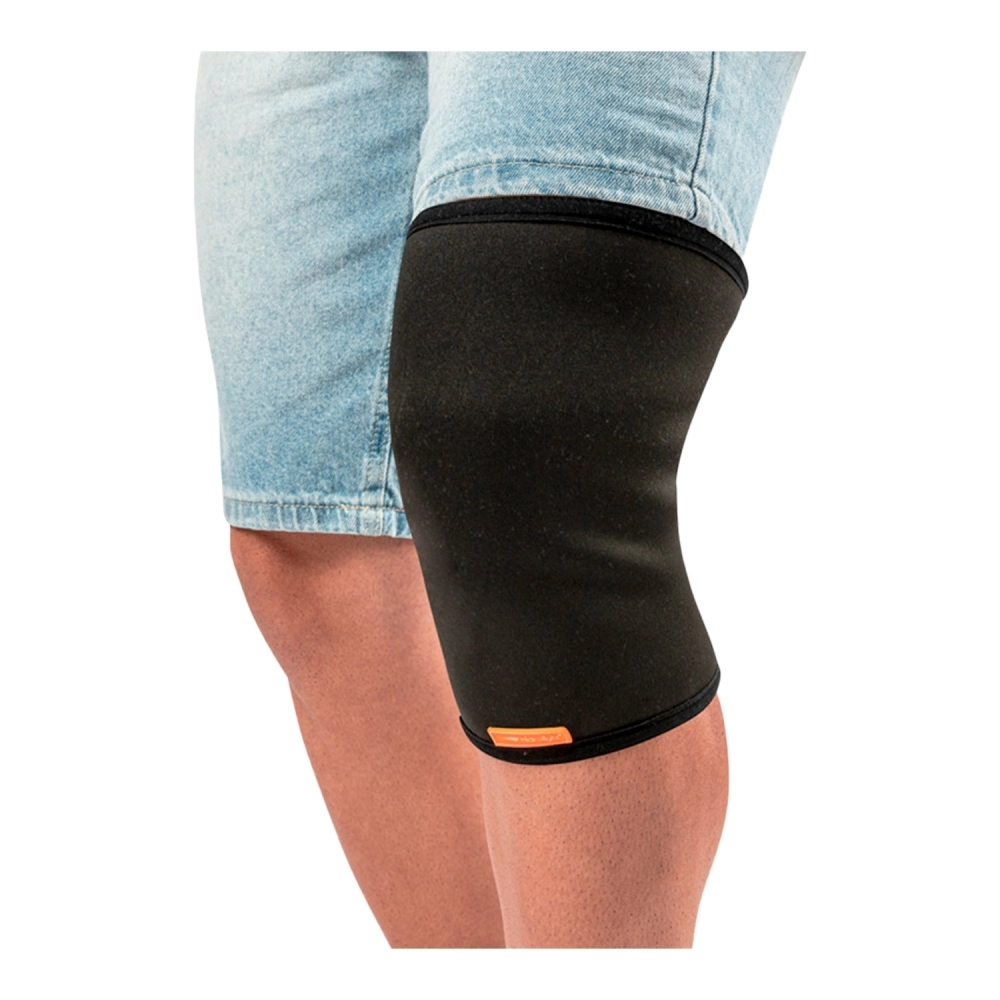 - Vista o produto pelo diâmetro maior e posicione o orifício no centro do joelho de modo que fique confortável e permita tranquila movimentação.
