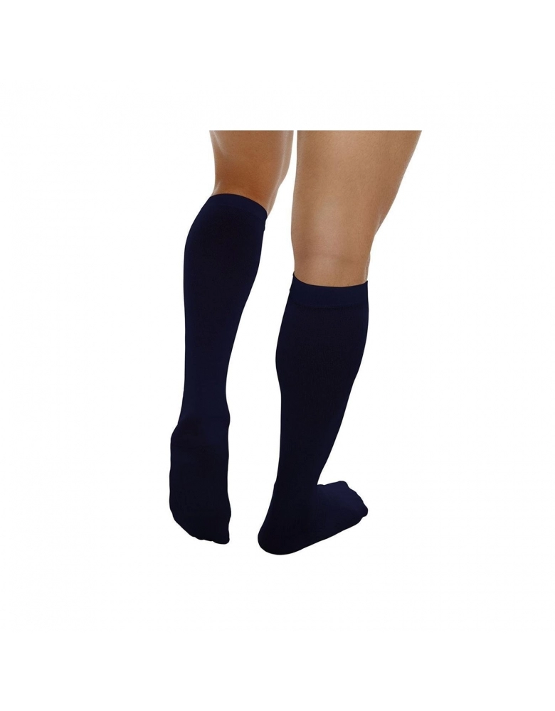 Meia masculina modelo 3/4 com compressão nível 18-21 mmHg, Ultra Pro (adaptar-se a temperatura ambiente e evitar a proliferação de bactérias causadoras de odor). A mais alta tecnologia em meias elásticas, possuindo um exclusivo sistema de compressão Graduada que começa com uma compressão maior na região do tornozelo, diminuindo gradativamente na direção das coxas, ajudando a circulação nas veias dos membros inferiores. Auxiliam na prevenção e tratamento de varizes e trombose e proporcionam conforto às pernas, reduzindo dores, inchaço e cansaço.