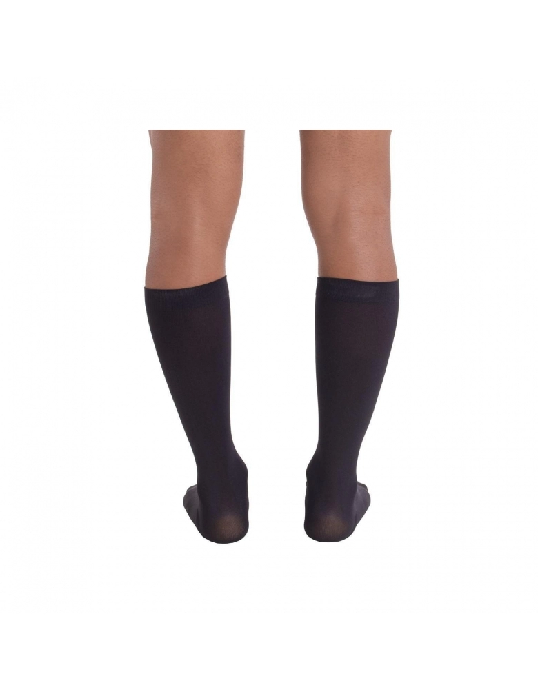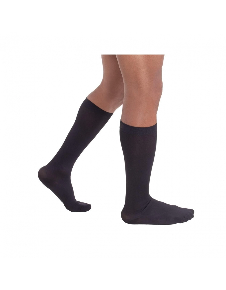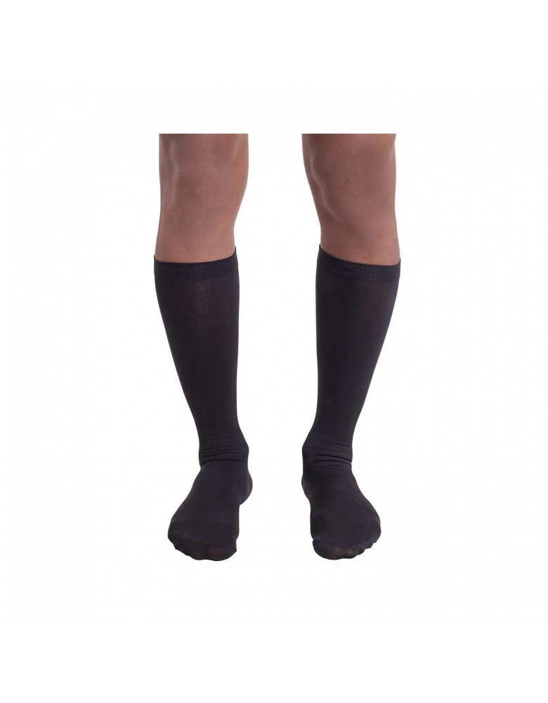 Meia masculina modelo 3/4 com compressão nível 18-21 mmHg, Ultra Pro (adaptar-se a temperatura ambiente e evitar a proliferação de bactérias causadoras de odor). A mais alta tecnologia em meias elásticas, possuindo um exclusivo sistema de compressão Graduada que começa com uma compressão maior na região do tornozelo, diminuindo gradativamente na direção das coxas, ajudando a circulação nas veias dos membros inferiores. Auxiliam na prevenção e tratamento de varizes e trombose e proporcionam conforto às pernas, reduzindo dores, inchaço e cansaço.