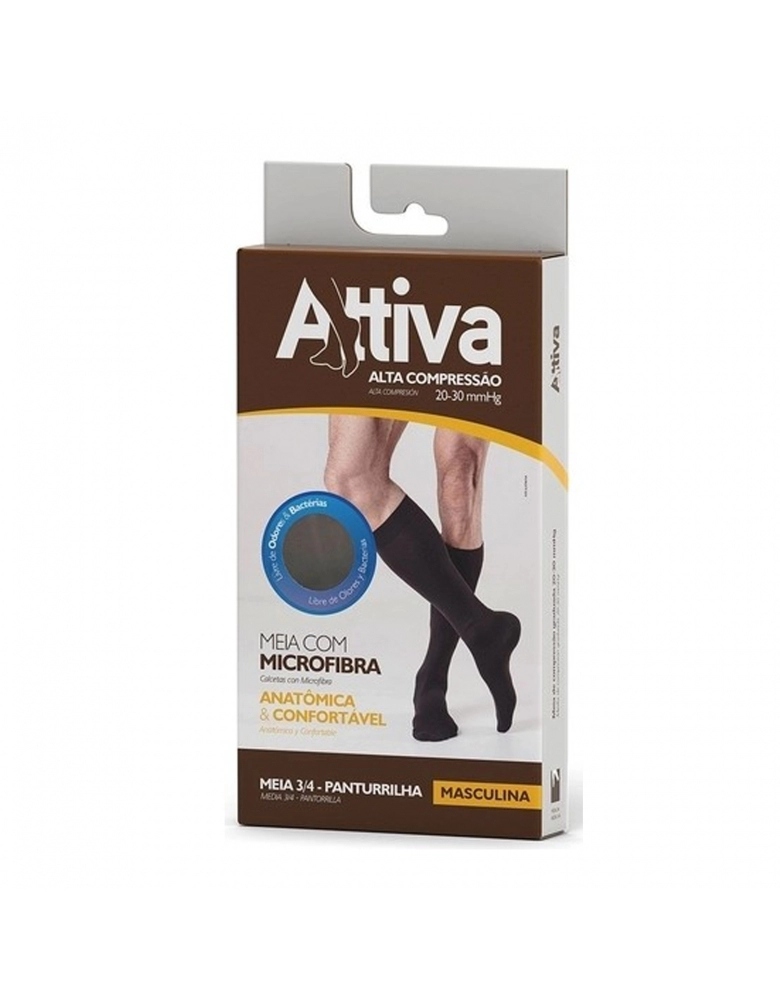 MEIA 3/4 20/30 ALTA COMPRESSÃO MASCULINA COM PONTEIRA G MARROM ATTIVA