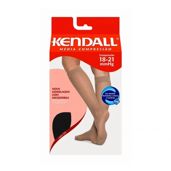 A Meia Kendall 3/4 com ponteira (18-21 mmHg) tem compressão graduada, o que significa que a maior compressão está concentrada no tornozelo e vai decrescendo gradativamente até a altura da panturrilha. Essa compressão facilita o retorno do sangue dos membros inferiores ao coração.