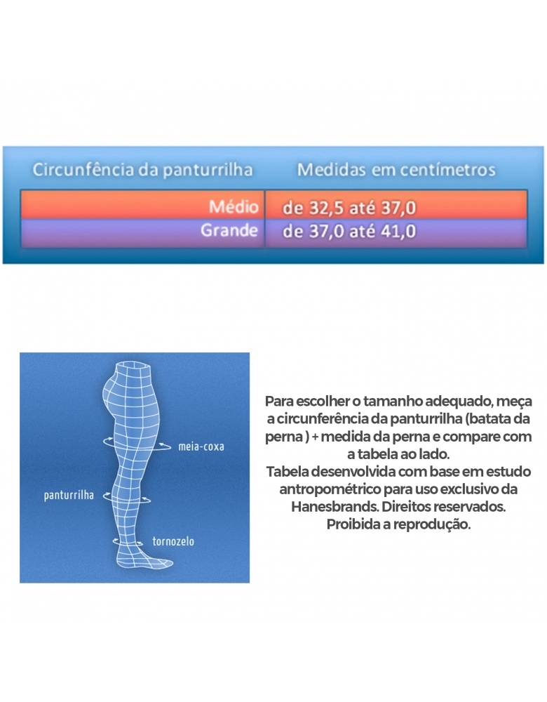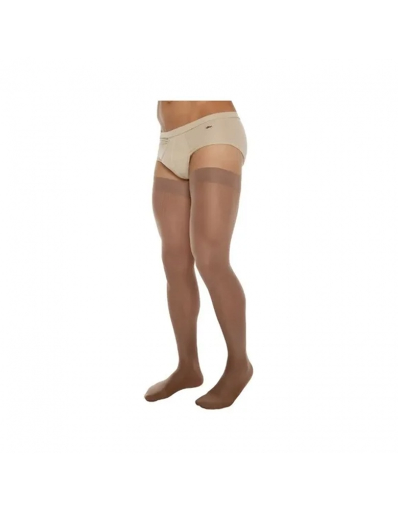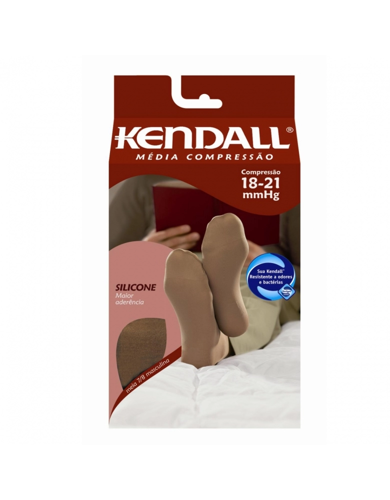 Meia masculina modelo 7/8 com compressão nível 18-21 mmHg, Ultra Pro (adaptar-se a temperatura ambiente e evitar a proliferação de bactérias causadoras de odor). A mais alta tecnologia em meias elásticas, possuindo um exclusivo sistema de compressão Graduada que começa com uma compressão maior na região do tornozelo, diminuindo gradativamente na direção das coxas, ajudando a circulação nas veias dos membros inferiores. Auxiliam na prevenção e tratamento de varizes e trombose e proporcionam conforto às pernas, reduzindo dores, inchaço e cansaço.
