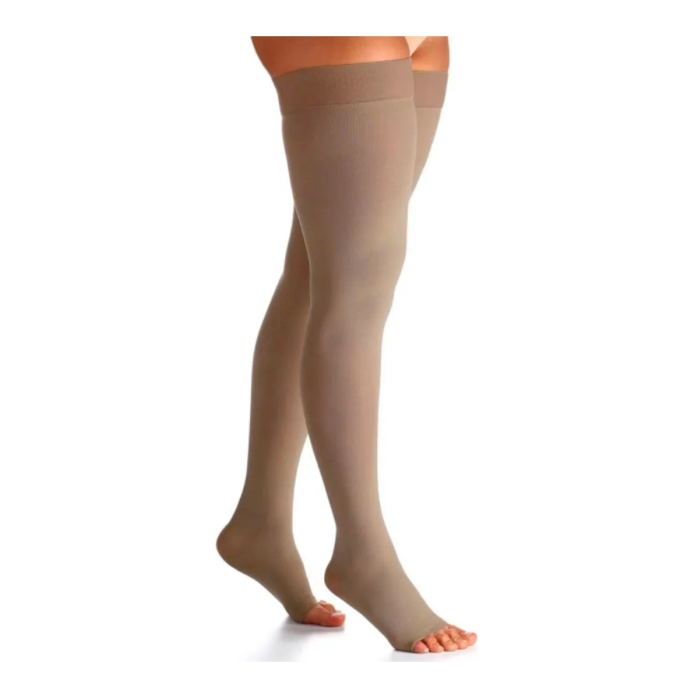 As meias Premium são revestidas internamente com microfibra, que auxilia a transferência da umidade da pele (suor) para o meio externo, oferecendo uma agradável sensação climática, além de tornar o produto mais sedoso, confortável e mais fácil de calçar. Eficaz para o tratamento das doenças venosas e linfáticas com manifestações leves, moderadas e graves.