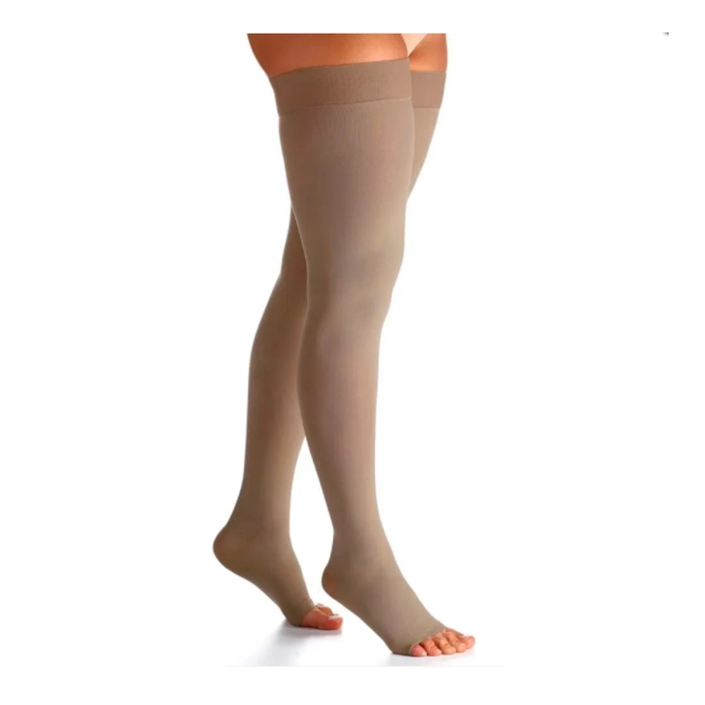 As meias Premium são revestidas internamente com microfibra, que auxilia a transferência da umidade da pele (suor) para o meio externo, oferecendo uma agradável sensação climática, além de tornar o produto mais sedoso, confortável e mais fácil de calçar. Eficaz para o tratamento das doenças venosas e linfáticas com manifestações leves, moderadas e graves