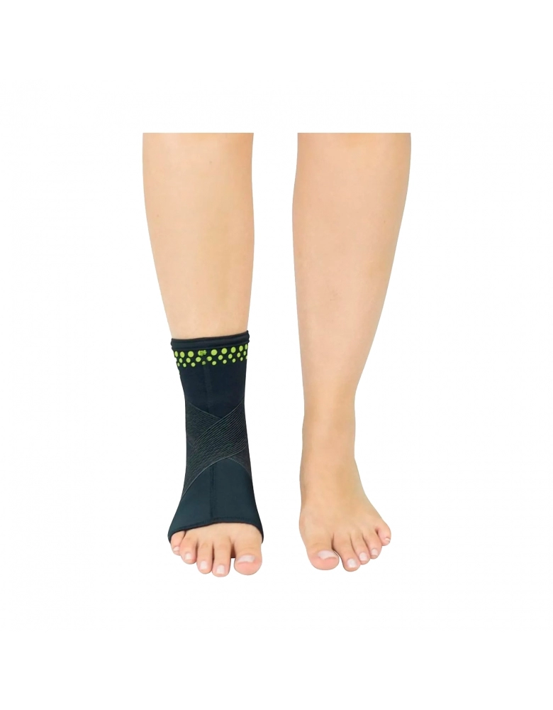 A tornozeleira proporciona estabilização na região do tornozelo, auxiliando na prevenção e recuperação de lesões. Possui cintas elásticas cruzadas que oferecem maior compressão e estabilização da articulação. Anatômica e com abertura no calcanhar, oferece maior conforto durante as práticas esportivas. Fabricada em Neoprene nas regiões do tornozelo e da perna, que contribui com o aquecimento e alívio da dor, e em tecido transpirável na região do pé, que permite a absorção do suor, proporcionando maior conforto durante o uso. Bilateral, pode ser usada tanto no lado direito quanto no esquerdo.